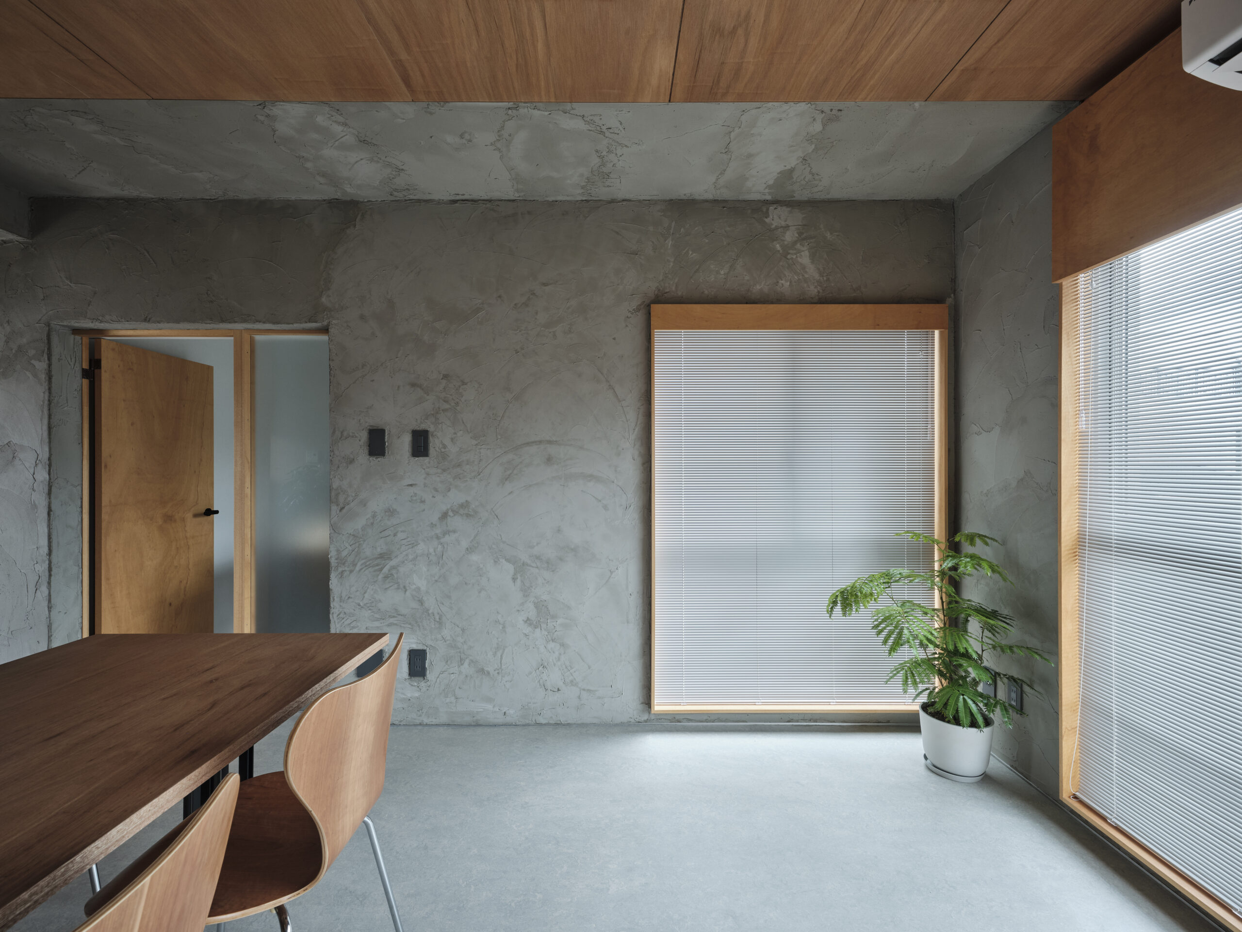 計画では、ワークスペース、ミーティングルーム、ラウンジの3つの機能を割り当て、それぞれの独立性を保ちつつ、分節された空間同士が緩やかにつながる構成を目指した。小さく分断された空間という与件に対し、人の動きや視線、光や風、音や気配といった要素が必然的に「横断」することに着目し、その行為そのものを空間の質へと転化することをテーマとしている。