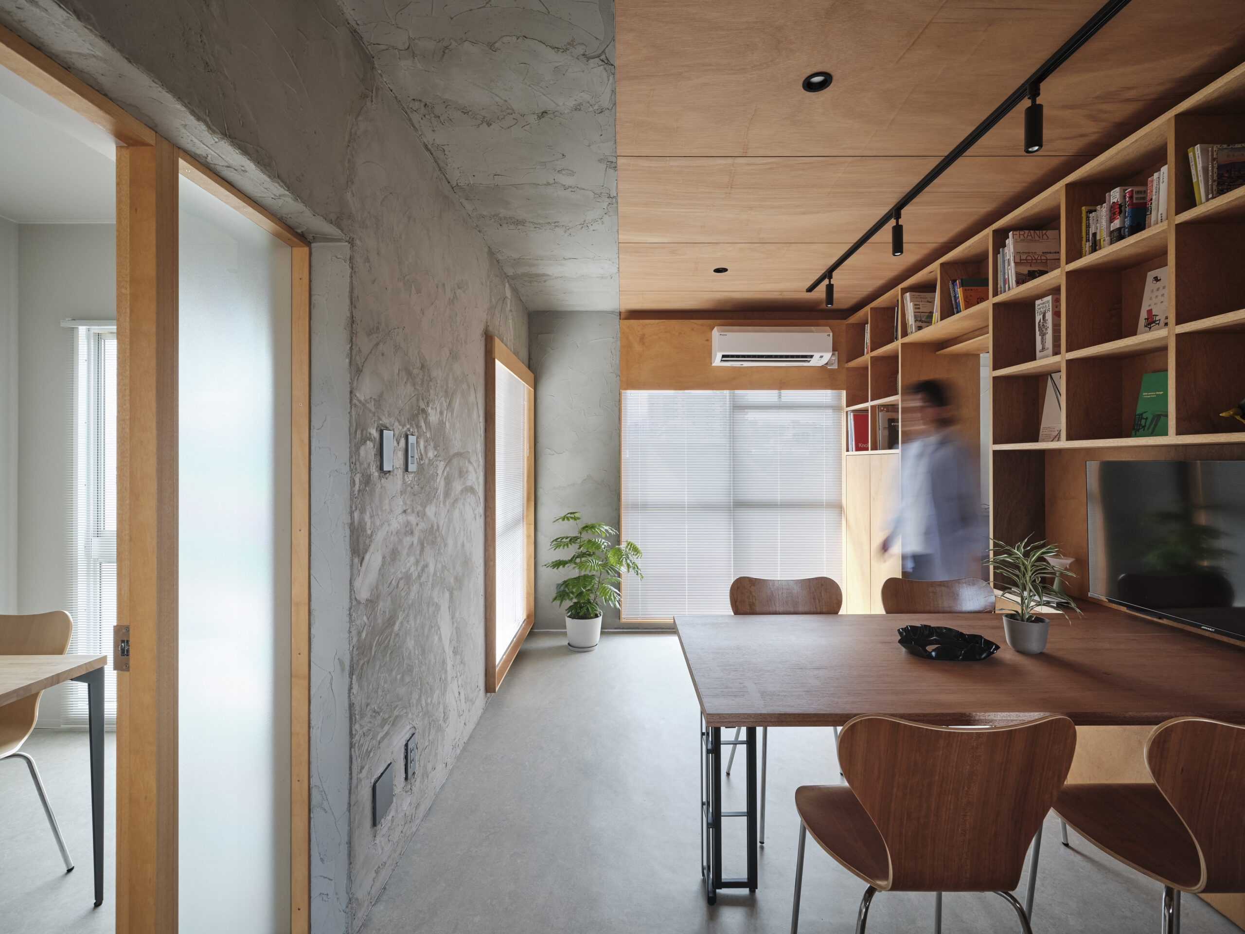 Rather than treating the small, fragmented layout as a limitation, the project focuses on the inevitable crossing of people, sightlines, light, air, sound, and atmosphere, and explores how these crossings can be transformed into spatial quality.
